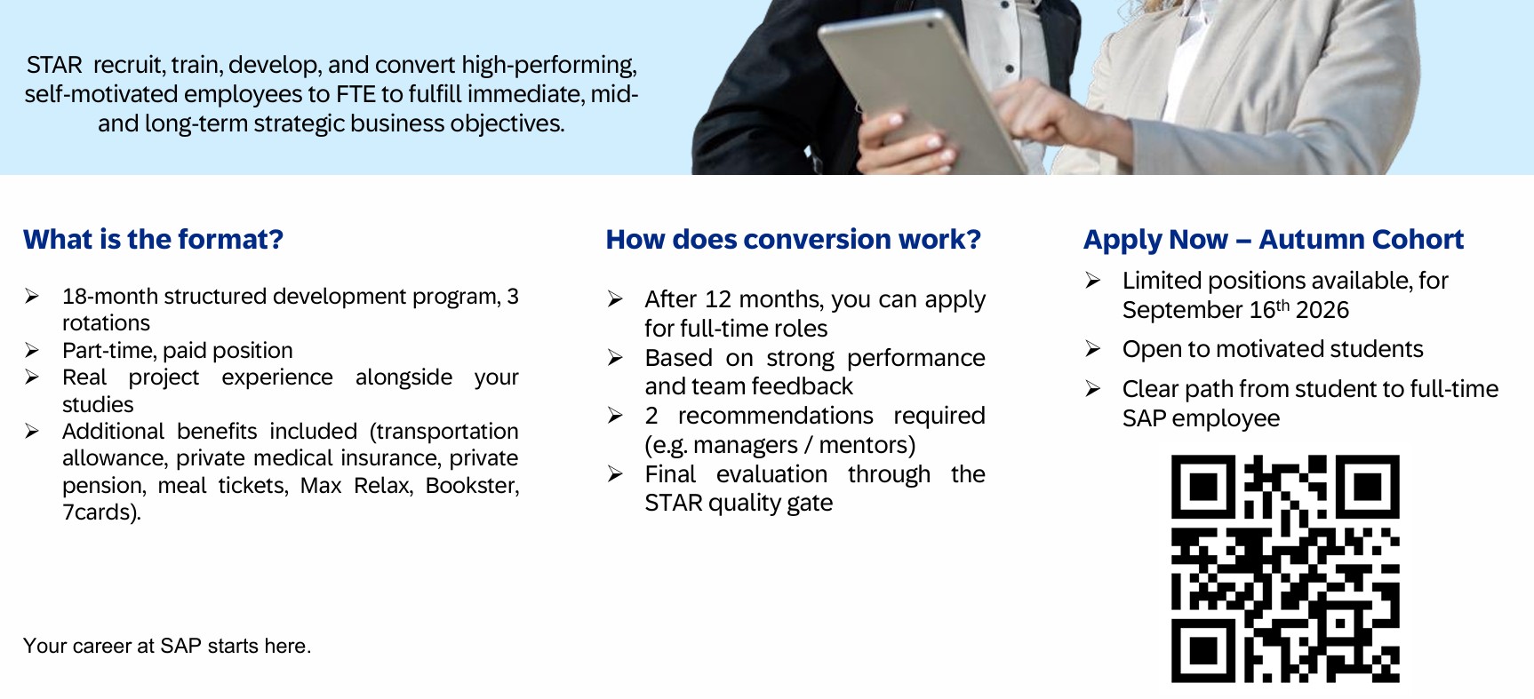 - An 18-month, part-time SAP STAR Student contract with competitive compensation
